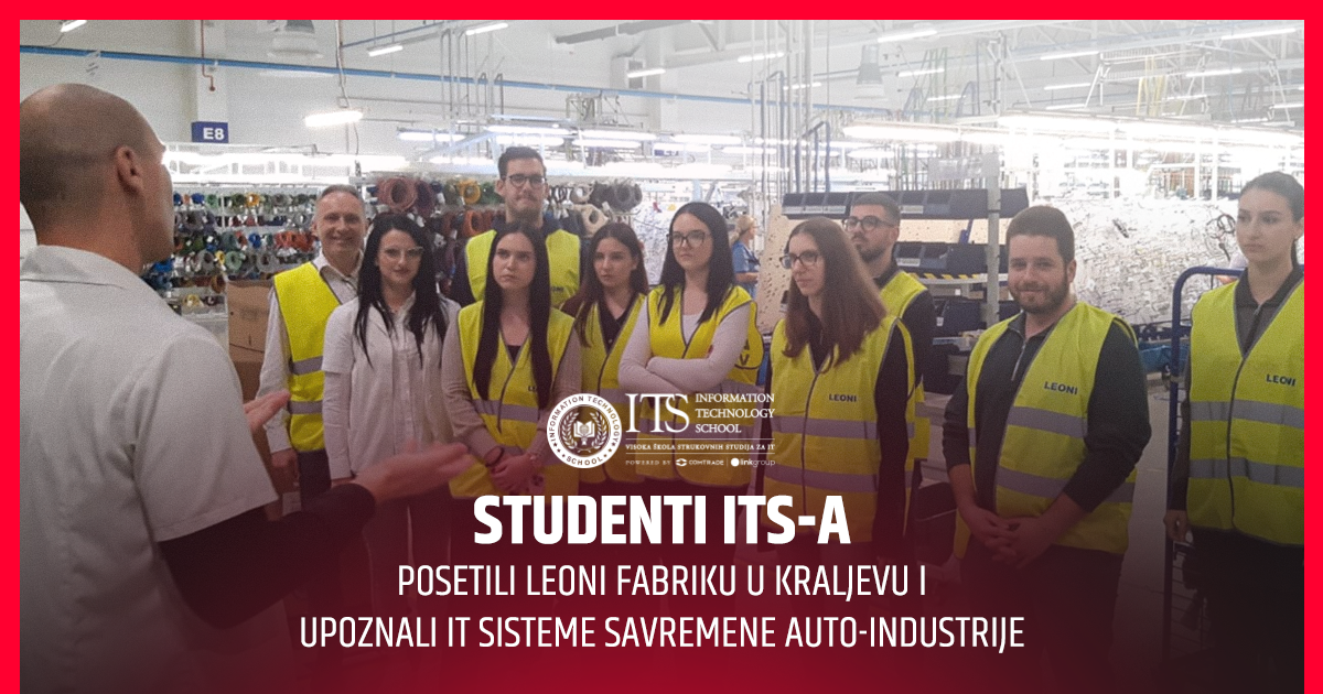 Studenti završne godine Visoke škole za IT – ITS imali su priliku da 6. novembra posete kompaniju LEONI Srbija i fabriku u Kraljevu, jednu od četiri fabrike koje ova kompanija ima u našoj zemlji. LEONI je proizvođač kablovskih sistema za automobile premijum klase i jedan od ključnih dobavljača globalne automobilske industrije. U pitanju je stručna, edukativna i motivaciona poseta organizovana uz podršku IT sektora fabrike, sa ciljem da studenti na licu mesta upoznaju procese u kojima su primena informacionih tehnologija i digitalnih sistema presudne za proizvodnju.