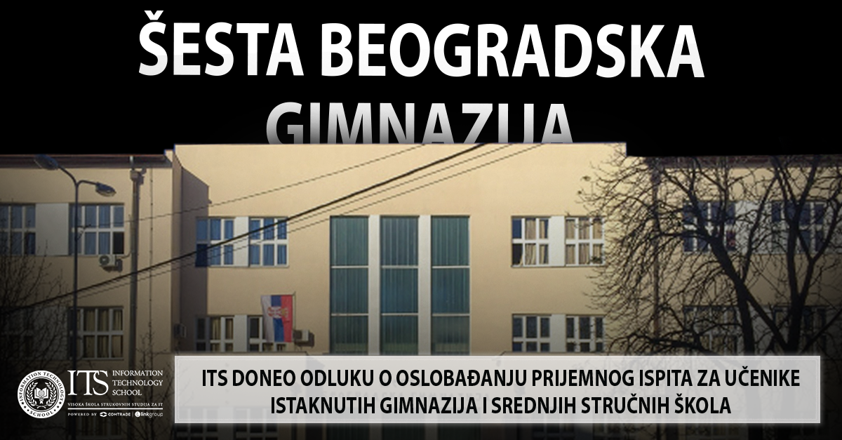 Visoka škola strukovnih studija za informacione tehnologije – ITS donela je odluku kojom se učenici škole Šesta beogradska gimnazija oslobađaju polaganja prijemnog ispita prilikom upisa na osnovne strukovne studije.