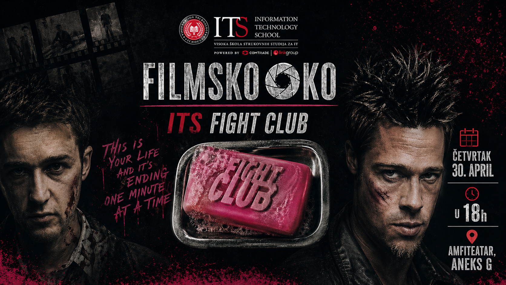 U okviru ciklusa FILMSKO OKO, u četvrtak, 30. aprila u 18 časova, u Amfiteatru Aneks G biće održana projekcija filma Fight Club.